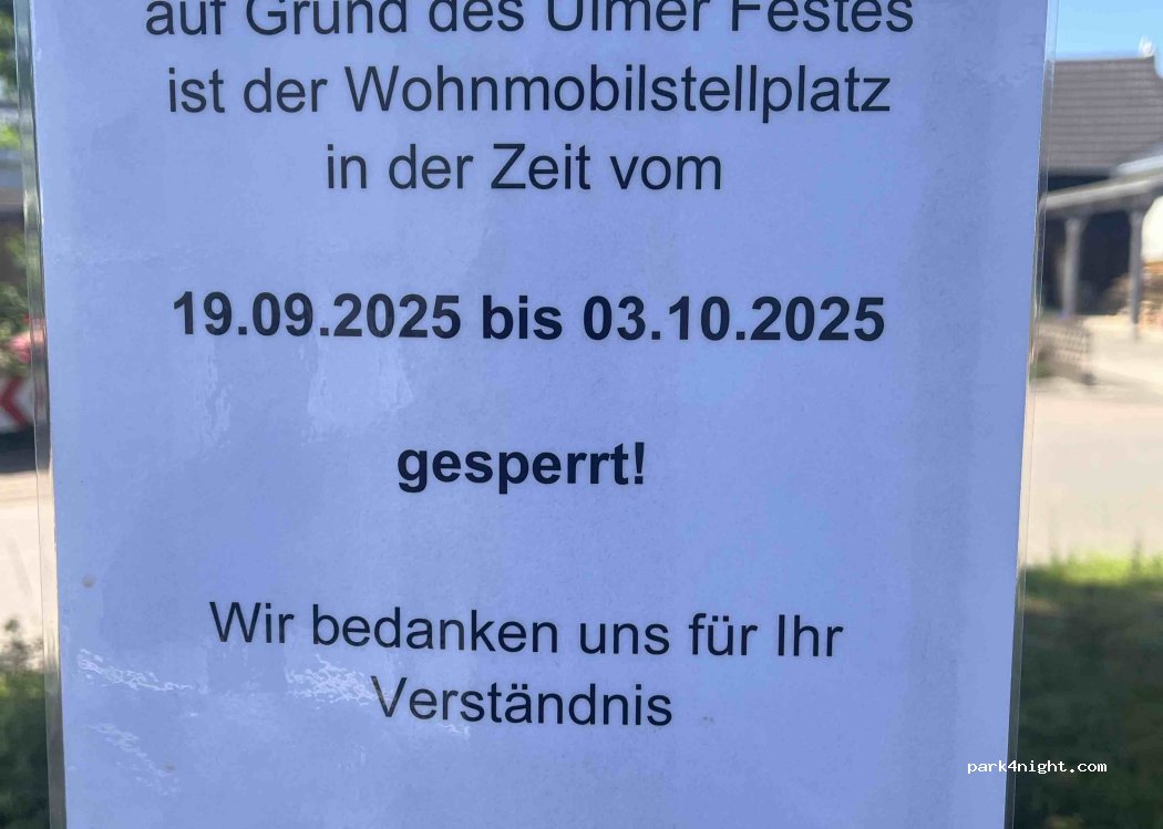 Bitte beachten, das der Platz wegen des Ulmer Festes vom 19.09.-3.10.25 gesperrt ist. Foto in der Galerie