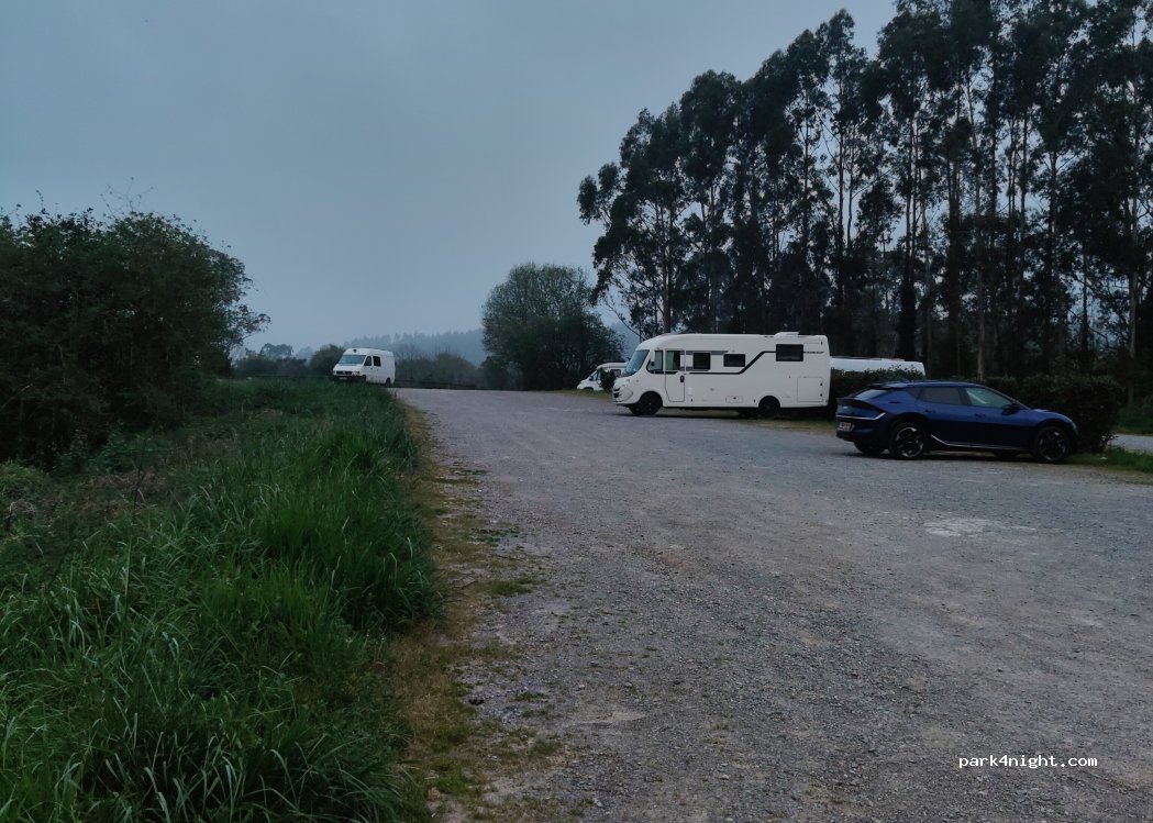 Spot idéal pour visiter les Bufones de Praia à 1,3km à pied. Le grand parking est un peu en pente mais avec des cales, nous sommes de niveau. Nous avons passé la soirée avec une vingtaine de camping-car/van. Endroit calme si ce n'est comme souvent des chien qui aboient tôt le matin. La police est venue faire une ronde de contrôle sans rien nous dire.
