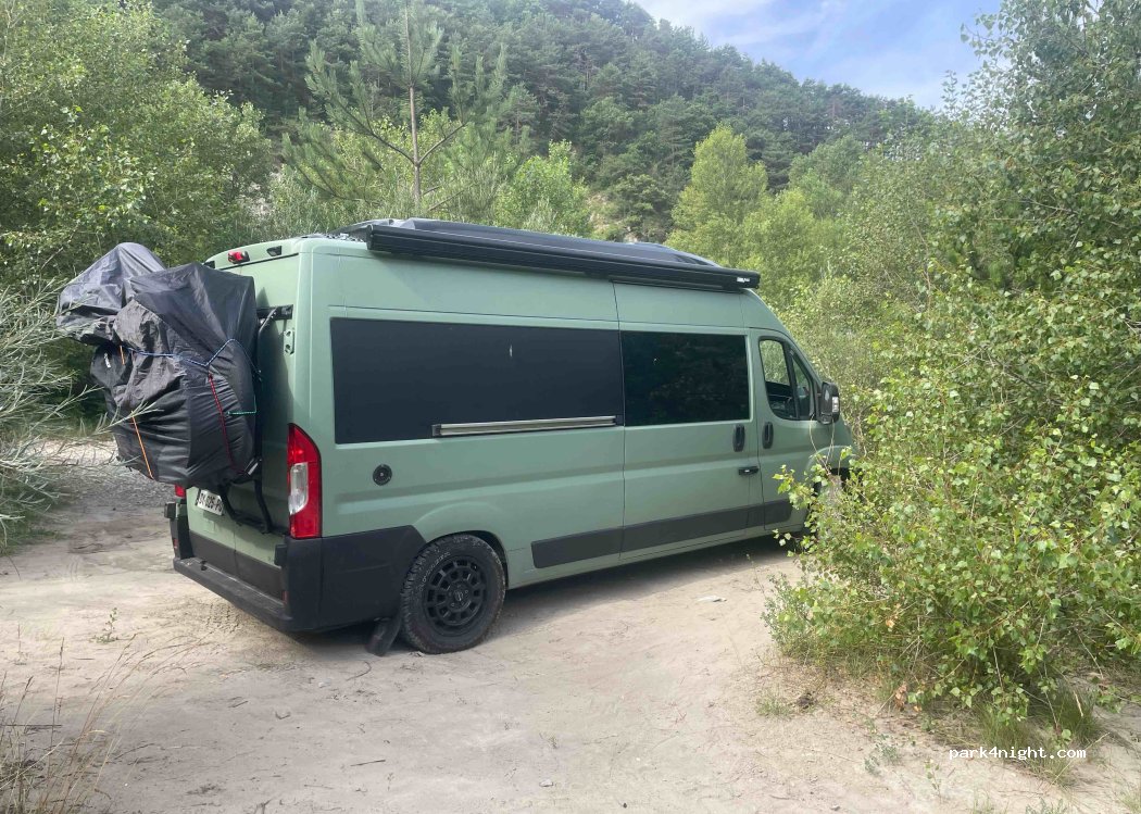 Super spot, nikel avec van. Seul au monde et accès direct a la rivière pour se rafraîchir. Ma route est derrière mais pas dérangeante.