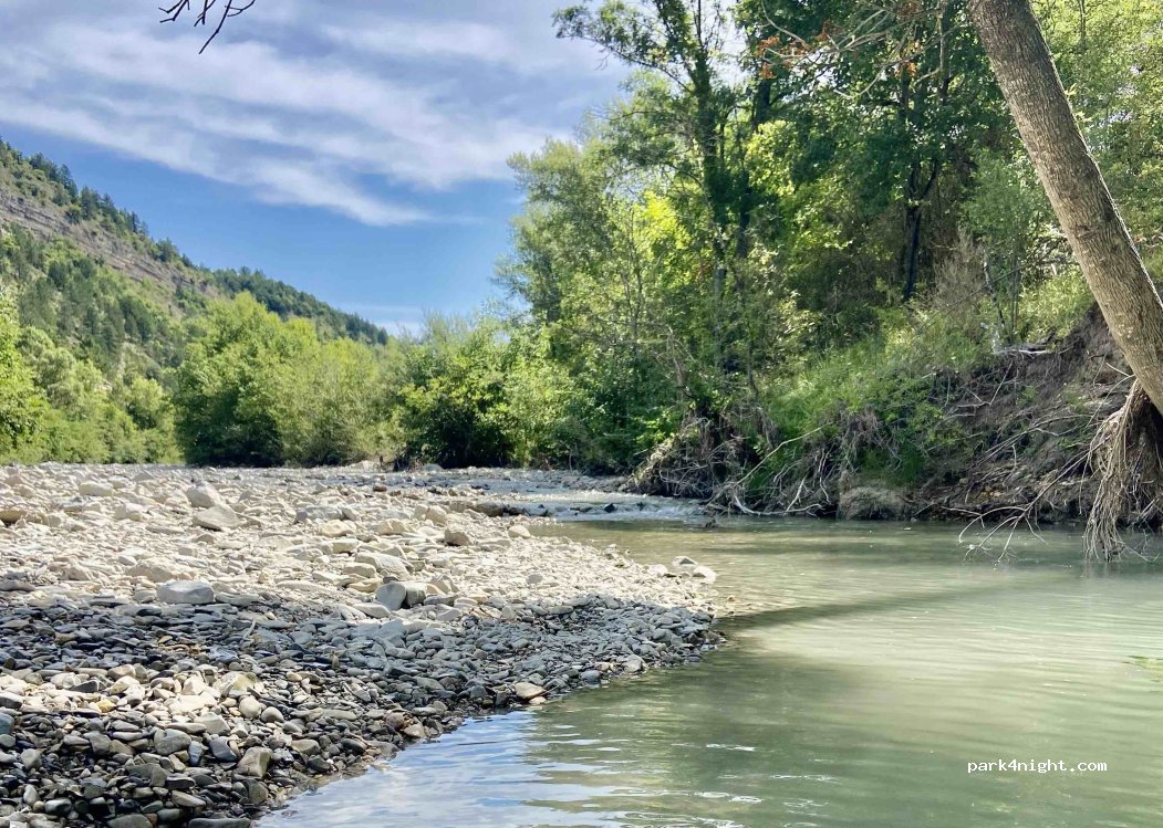 Bon endroit vraiment proche de la rivière. On entend un peu la route mais rien de gênant. Attend au long fourgon pour faire demi tour. Nous n'y avons pas passé la nuit