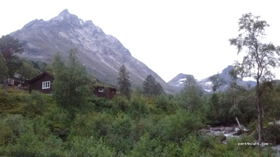 Parkplatz für die Romsdalseggen-Wanderung und mehrere Hütten (mautpflichtige Straßen). ruhig, herrliche Aussicht auf die Berge, Wildbach in der Nähe. Keine Übernachtung
