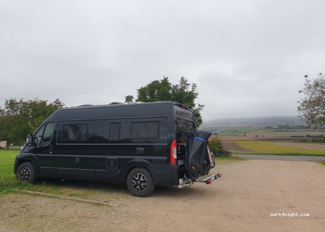 Parking plat avec la campagne environnante. Accessible aux grands CC. Nuit tranquille et sans bruit.