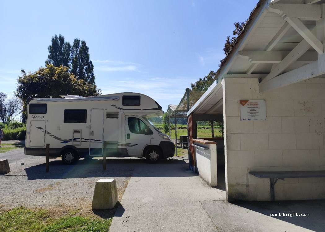 Nous y sommes allés les 4 et 5 août, 2 nuits au calme avec quelques autres camping-cariste. Le cadre est sympa avec de quoi se garer sur l’herbe, à l’ombre. Propre avec poubelles à disposition. Un peu plus loin un petit bloc sanitaire avec point d’eau, et espace pour vidange eau grise uniquement. Attention, lorsque nous avons mis le GPS celui ci nous a emmené au beau milieu d’un village, à vérifier. Bonne route à tous !