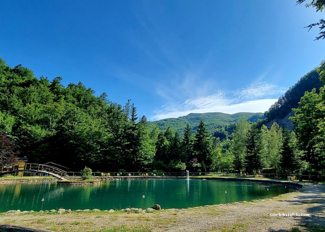 sostato una notte, no servizi ma posto tranquillo e in mezzo alla natura. accanto c'è bar e ristorante annesso al laghetto di pesca sportiva. l'accesso è su sterrato ma raggiungibile senza problemi con camper anche superiori ai 7m