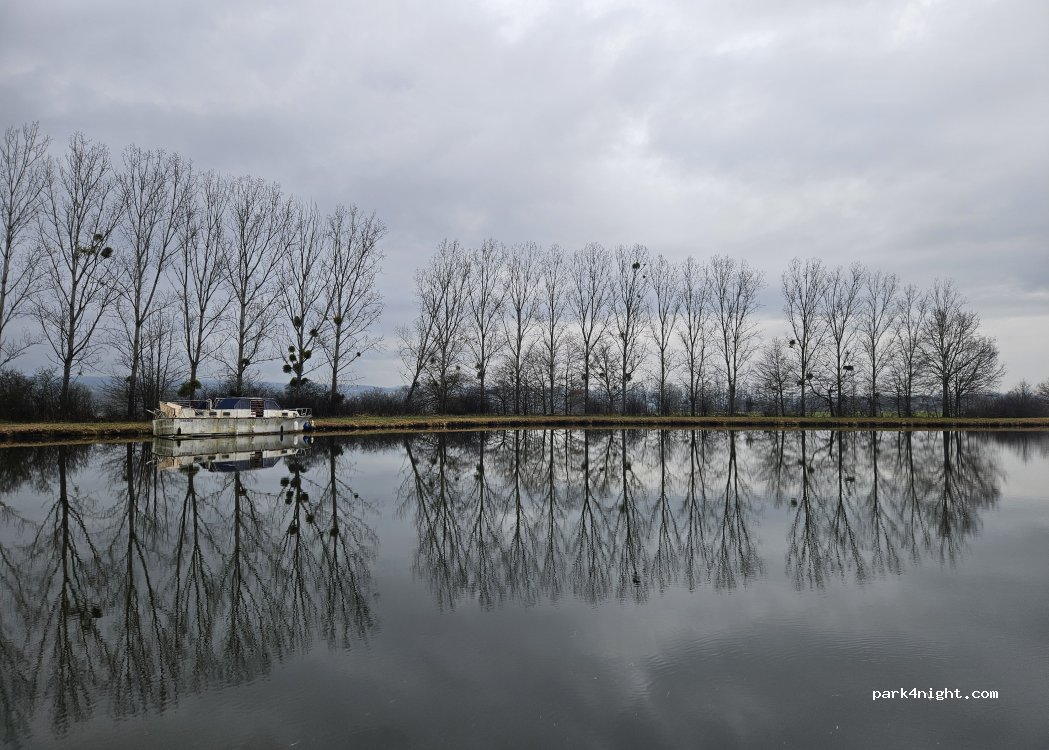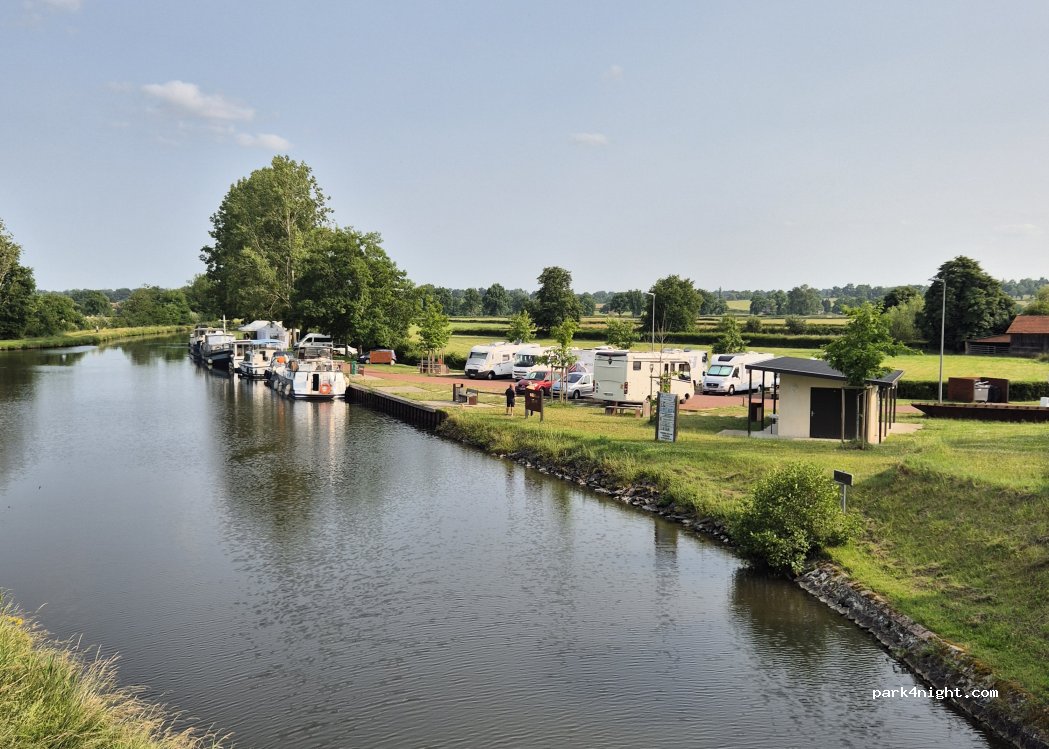 une aire superbe pour 6 camping-car au bord du canal. sur place eau, électricité, vidange.