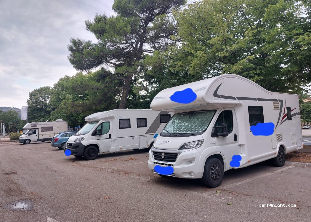 Parking payant le jour (mais nous n'avons pas trouvé où payer), nuit gratuite et jours fériés. Pas calme en raison des bars avec de la musique du matin au soir, mais donnant sur le parc et est à 2 minutes du centre. Plusieurs spots wifi gratuits
