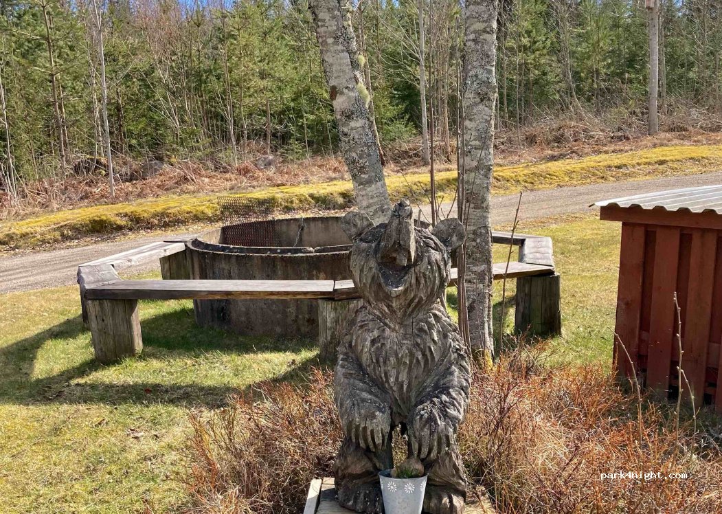 Schöne Stellplätze, etwas abseits der Straße, Ver- und Entsorgung möglich, Kostenpunkt 100 SEK/Nacht (10 Euro), Strom 75 SEK/ Nacht (7,50 Euro). Nur Barzahlung.