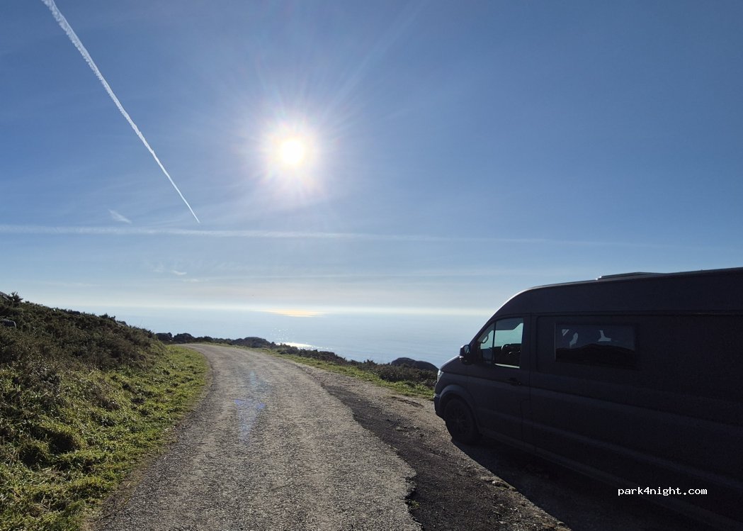 We parked just 30m below this exact GPS coordinate. We drove backwards down so we didn’t have to turn. Very beautiful spot, watching the sunset or enjoying the ocean view (if its not to cloudy). There are quite a lot of hikers coming by so its not private. Finding a place for number 2 is also not easy here. Internet connection was good enough.