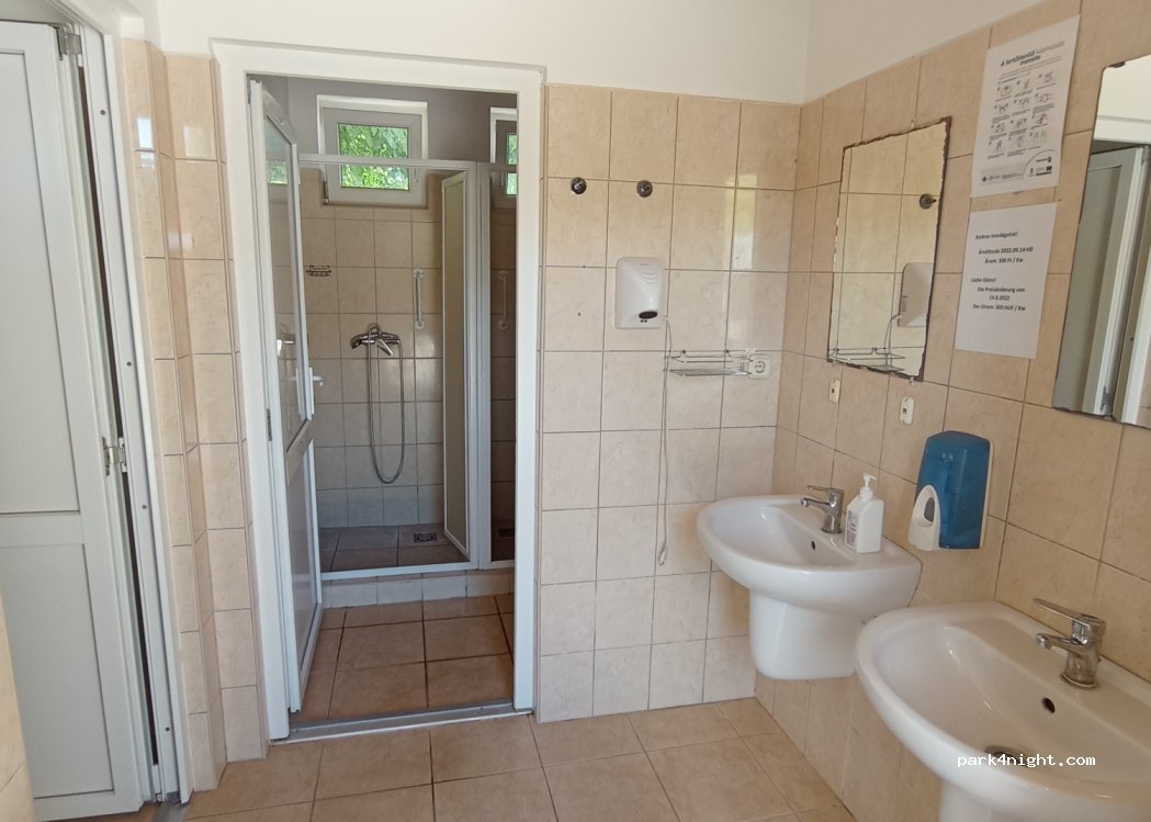 Nice little campsite with thermal bath. Parking spaces are not large, they need to be maneuvered with a 6.5-7 meter motorhome, but they can be solved. White water is only in the kitchen sink, only thermal water flows in the bath and on the outside tap. I recommend!