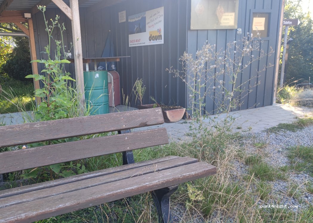 Goed onderhouden plaats. Tafels, fruitbomen en groen. Toiletten zijn eenvoudig, maar netjes. Automaat met lokale lekkernij (appelwijn met cola, maar ook bier en vers vlees). Beheerder houdt het netjes. Tussen enkele woning, veilig gevoel. Ook soms onrustig door honden, kippen en kerkklokken. Dorp op loopafstand. Goede bakker, café en ruïne. Tip: Felsensee in de buurt, indrukwekkend klauteren.
