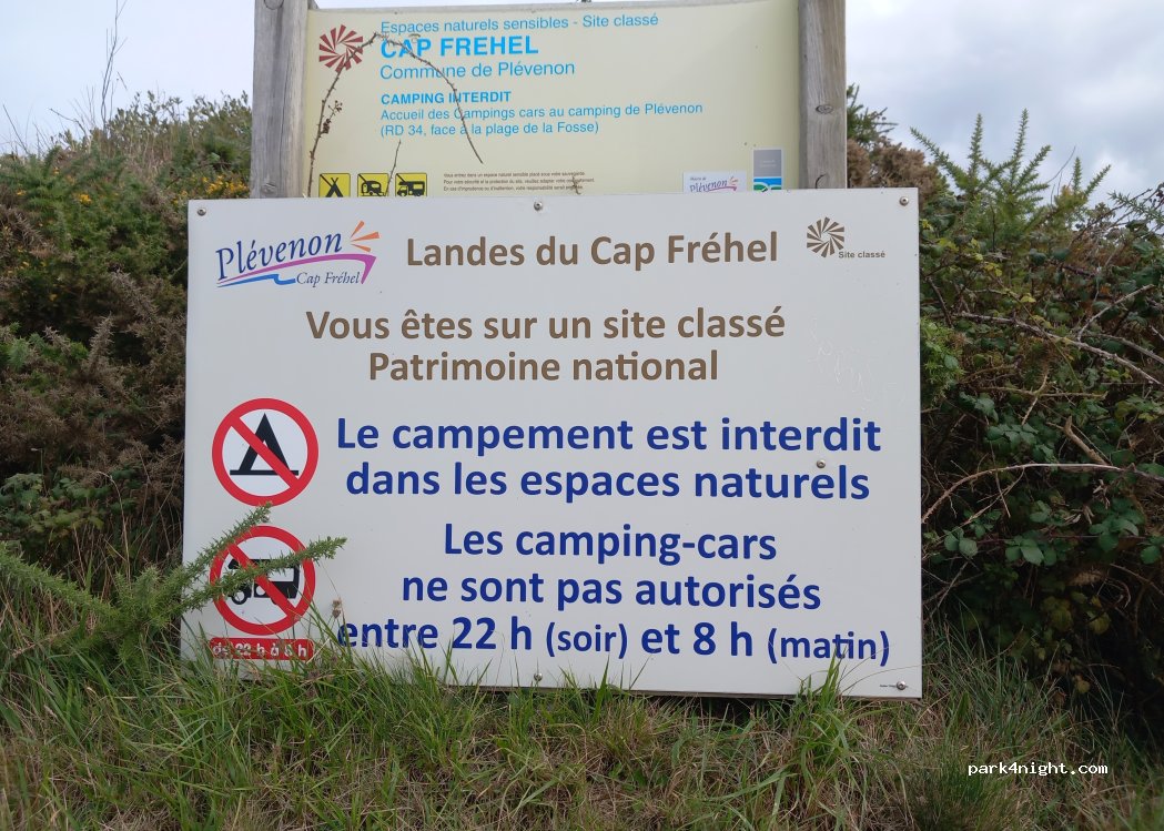 Parking gratuit en face de la plage réservé aux camping car. Merci à la mairie de Plevenon