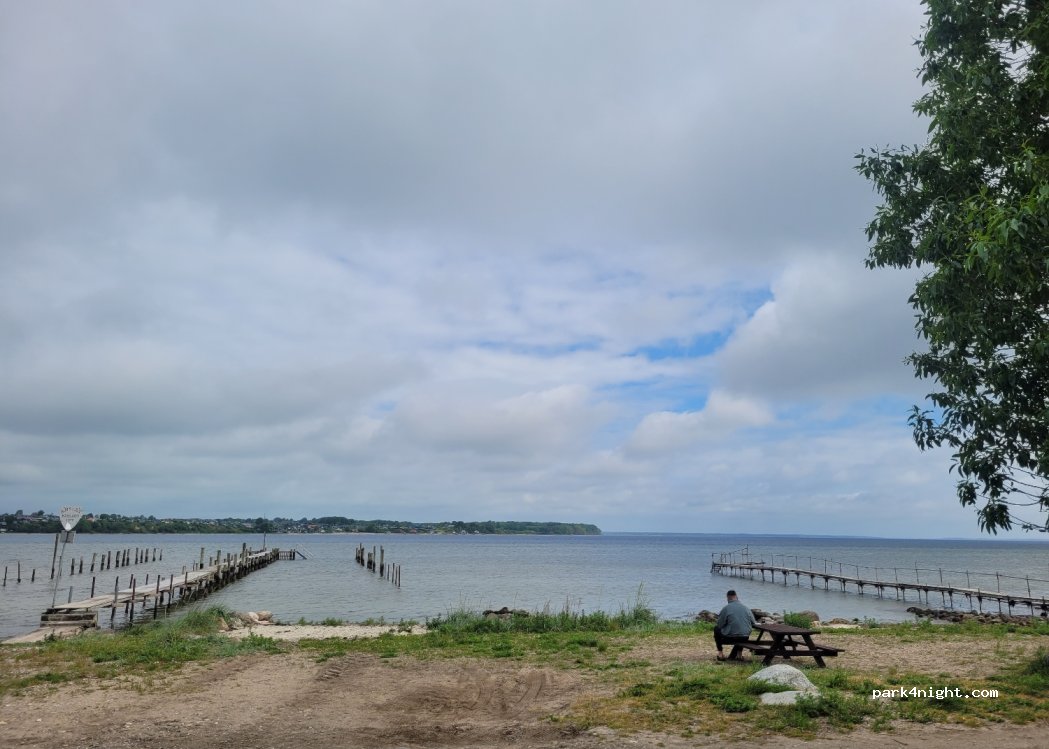 Schöner Platz mit hauptsächlich Dauercampern plus 14 Stellplätzen in 2 Reihen direkt mit Sicht auf den kleinen Belt. Super idyllisch. Auf dem Rasen davor Picknick Tische. Langer Badesteg mit Rutsche. Perfekt!!! Besser stehen kann man nicht!!! Toiletten und Duschen im End 70ger Charme, aber ausreichend sauber. Duschen 5min/5Dkk. Hier kann man gut auch länger stehen. Mitte August Wohnmobil 2 Hu 200Dkk