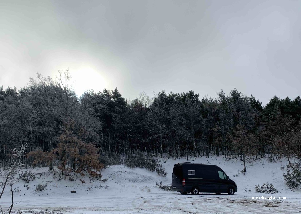 Parking of the viewpoint of the flat stones, at the end of the recreational area of ​​the Ermita de Hontanares. It is dirt, quite flat in the middle of the oak forest. Without services, perfect to spend a night and watch the sunset. There are no shadows