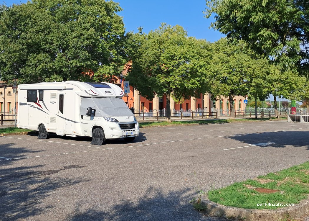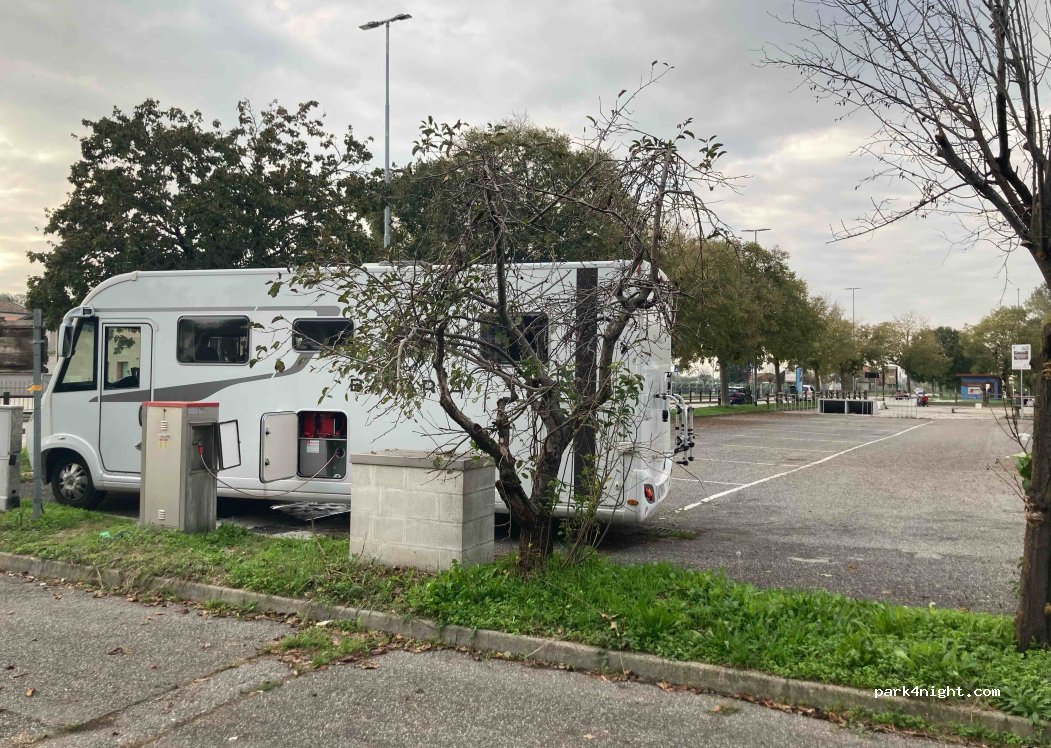 Idyllic little farm with many different animals (ponies, dogs, cats, chickens, rabbits, bees, insects of all kinds...) and a very nice host who speaks German and Englisch, has lots of good tips for the area and his mom, who likes to speak in Italian and bring apricots or blackberries. There is a mini pool to cool off in and you can rend bikes and rickshaw. The bathroom is very modern and clean. By the nearby river there is a nice beer garden with delicious foccacia. There are various small specialties to buy, such as eggs, honey, jam, wine, vinegar and olive oil. A trip to Mantua is recommended and it is half an hour from Lake Garda or Verona.You park in the field, little shade for the summer, sometimes music coming from the restaurant on the river.