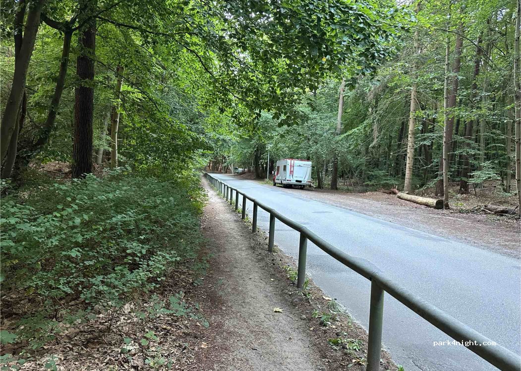 Schöner ruhiger Parkplatz mitten in einem Waldstück. Auf der angrenzenden Straße war wenig Verkehr. Wir haben eine ruhige Nacht hier verbracht. Von 8-22 Uhr ist er Kostenpflichtig, 1,20€ pro Stunde.