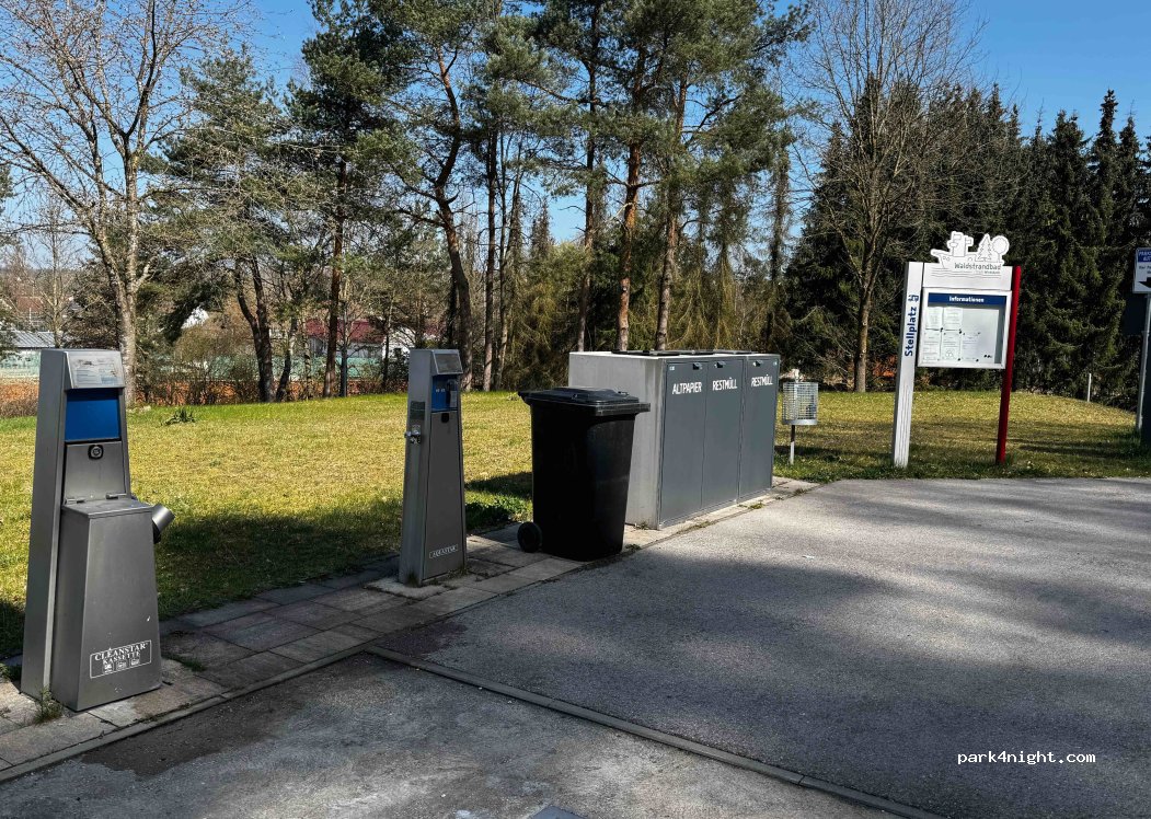 Neu angelegter, sehr schöner und ruhiger SP bei einem Waldbad! Jeder SP ist mit Strom ausgestattet! Eine vorbildliche V/E-Station ist vorhanden! Bezahlung momentan noch im Rathaus! Parkautomat und Mülltrennsystem wird noch installiert!