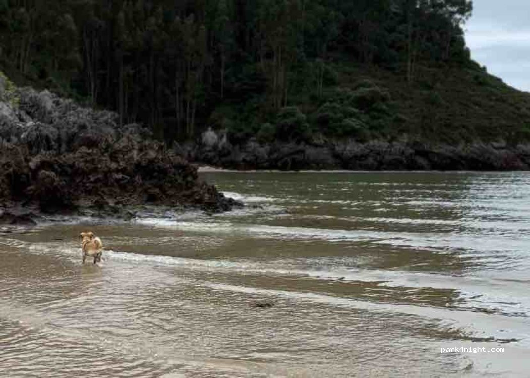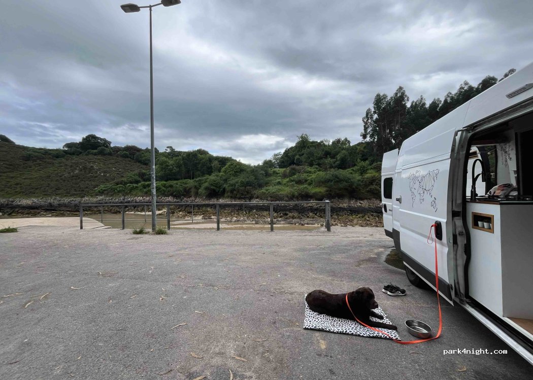 Sitio súper tranquilo, con acceso directo a la playa cuando la marea está baja. Hay poca gente y caben furgonetas grandes. Aunque seguramente no esté permitido el acceso, nosotros estuvimos con nuestros perros sin problema :)