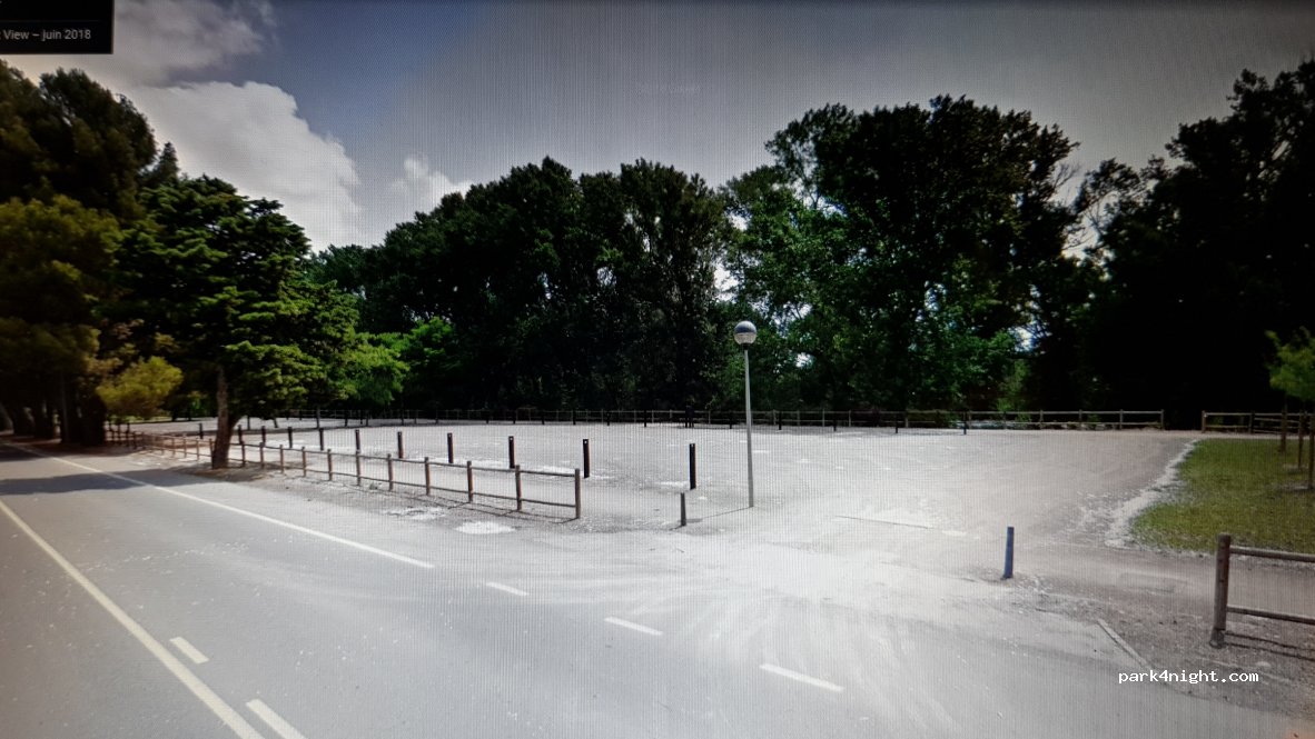 très bon parking. avec un peu de chance vous aurez de l'ombre. piste cyclable, allée piétonne et emplacement de pique-nique à côté. je pense qu'on peut y passer la nuit sans soucis.