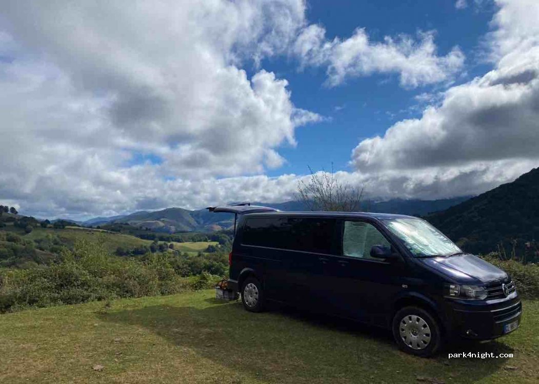 En bordure de route, peu fréquentée. Une jolie vue sur les montagnes. Idéale pour une nuit. Par temps pluvieux les places sont limitées