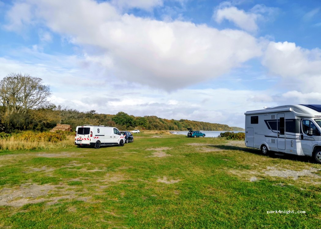 Quelques véhicules, deux camping-cars et un van. Aucun service mais endroit très serein.