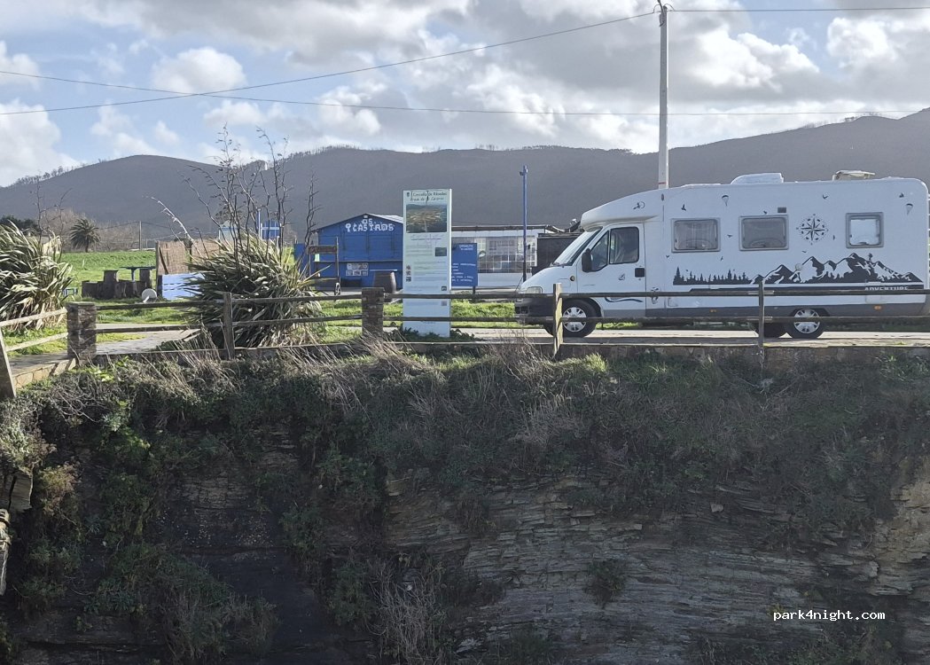 A 20 metros, està el parking del chiringuito de la playa Os Castros, el dueño es muy amable y permite pernoctar. Muchísimo espacio. La comida es muy buena y el trato es inmejorable. Probad el « pulpo a feira «