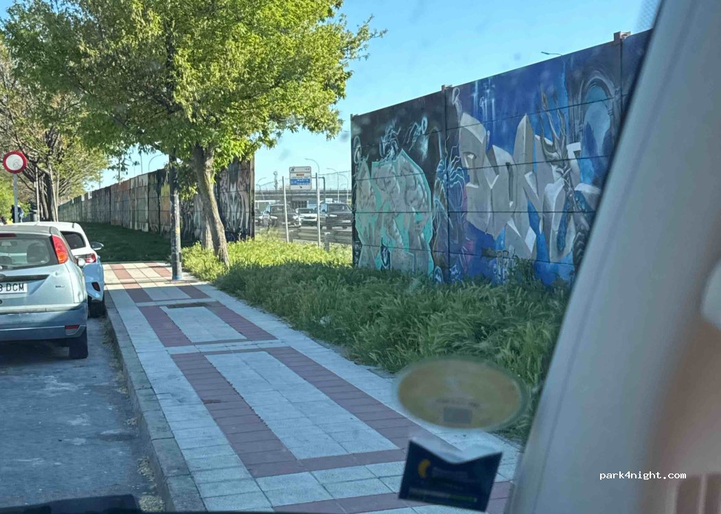 Parking day and night, without services, near the highway, near the Miguel Hernández school. There is a fountain and several parks. At night, very quiet. Next to the Metro station and near the city center. In Calle Madrid there are plenty of great places for having beer & tapas.