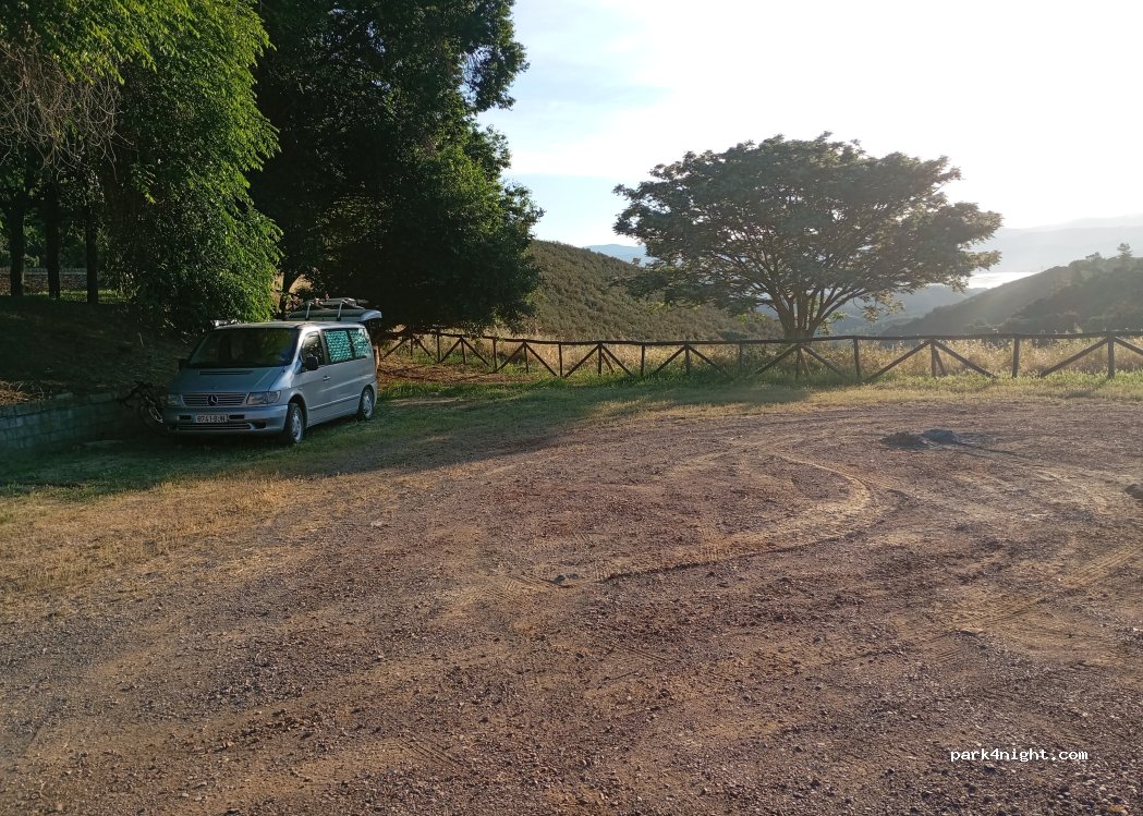 Wow! Wir haben es sehr geliebt inmitten der Natur mit Blick auf den Stausee zu stehen. Es gibt eine große Fläche, die allerdings sehr uneben ist. Mit kleinem Camper kann man etwas oberhalb am Rand eines Weges stehen. Dort gibt es auch ebene Plätze.