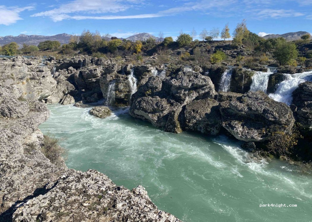 Haben auf dem Parkplatz vom Restaurant gestanden, auch über Nacht. Hatten vorher im Resto gefragt, die meinten bloß, nicht unbedingt in der ersten Reihe, lieber etwas weiter hinten. Abends noch ein paar Bierchen getrunken und frühs vom Sonnenaufgang über dem Wasserfall erfreuen gelassen. Spaß, gibt Regen. So ist das, Ende November am Mittelmeer.