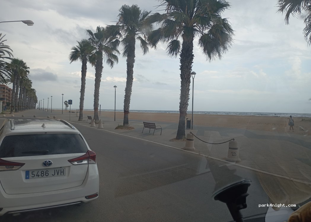 Road in the immediate vicinity of the beach. Not nice but in the vicinity of public toilets, drinking water fountain and supermarket.