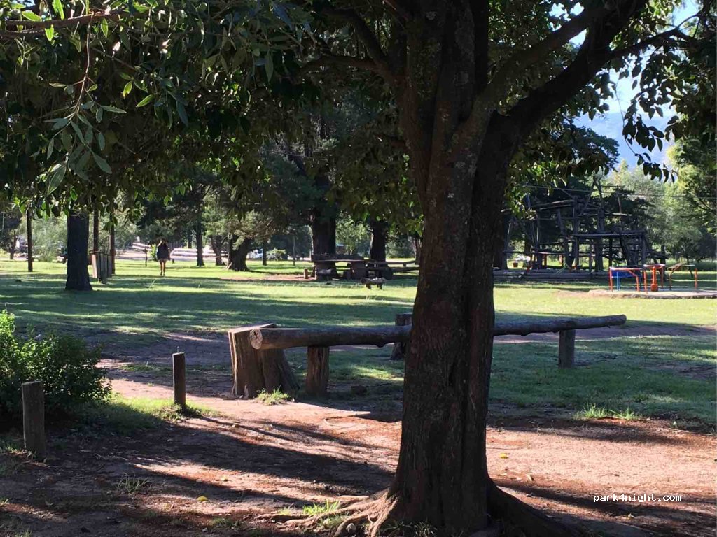 Plaza Enrique Dick. Ein Spielplatz und ein Picknickplatz, ein paar verstreute Tische. Ausreichend Parkfläche weit weg vom Bahnhof und den Häusern. Die Bushaltestelle verfügt über Toiletten und eine Bar, in der Speisen und Getränke verkauft werden. Wir blieben in der Hochsaison, wir hatten keine Probleme mit Lärm oder wurden gebeten, uns zu bewegen. Die sehr freundlichen Bewohner erzählten uns von der kostenlosen WiFi-Verbindung und dem Trinkwasserhahn unten.