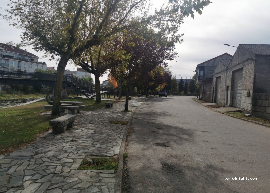 Pasé noche en Camper y lugar muy agradable, junto al río y con zonas verdes y bancos. Fue sábado y tuve un poco de mala suerte porque algunos jóvenes fueron a las mesas de picnic a conversar y pasarlo bien, sin pasarse, pero molestaban algo. Entre semana supongo que bien. La fuente no funciona. Se ve seguro, iluminado y llano.