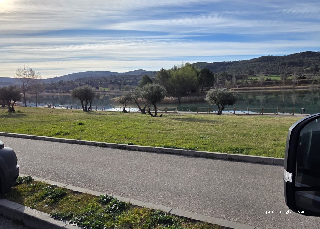 Un sitio muy tranquilo para dormir. Por la tarde muy concurrido por familias paseando y haciendo deporte. Siguiendo el carril bici había hasta una zona de baño en el embalse.