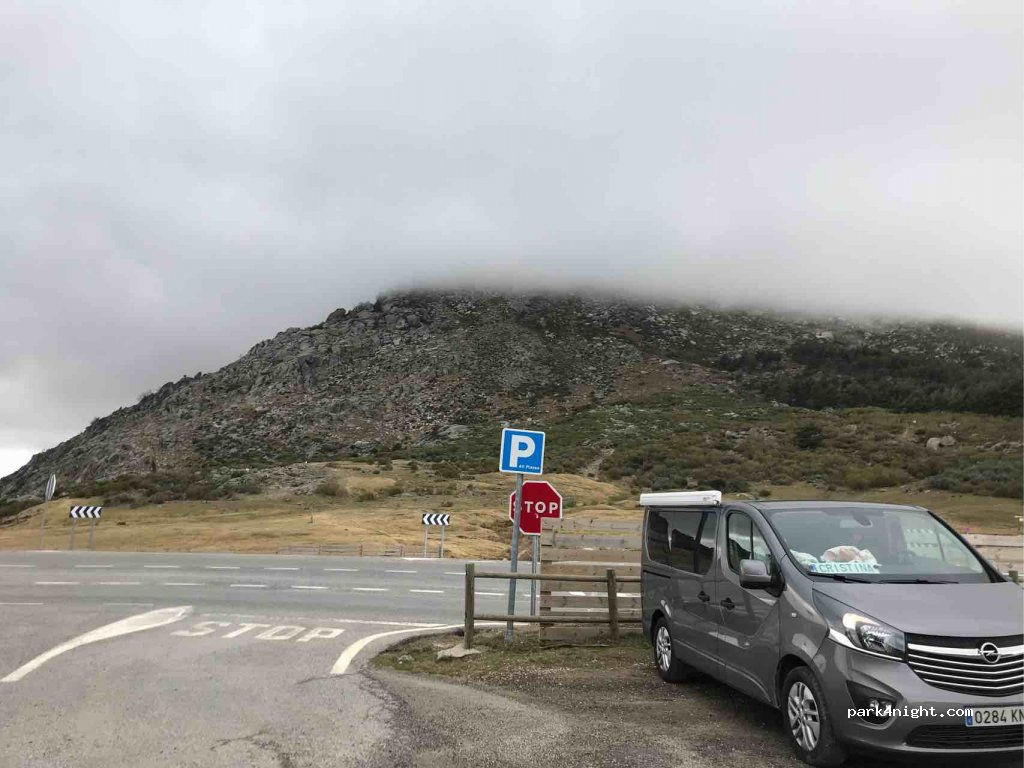 Vlakke parking, net naast de weg richting Gredos. Wij spendeerden hier een koude maar heel rustige nacht onder een prachtige sterrenhemel.