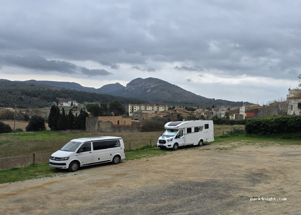 Public parking in the town of Bellcaire. Good views and quiet at night. Hiking and biking trails to L'Escala, L'Estartit and Torrellas de Montgri. Nearby food stores in the same town.