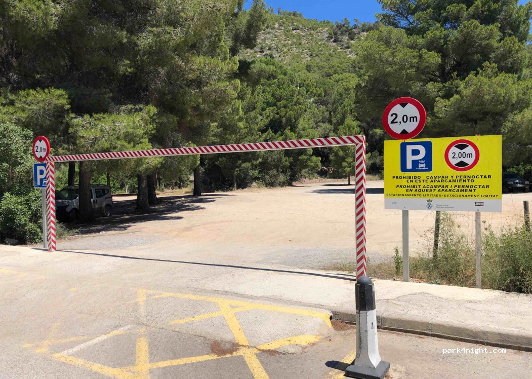 La pernocta está prohibida a través de un cartel que hay al principio de la carretera de acceso a la cala de Benirrás.