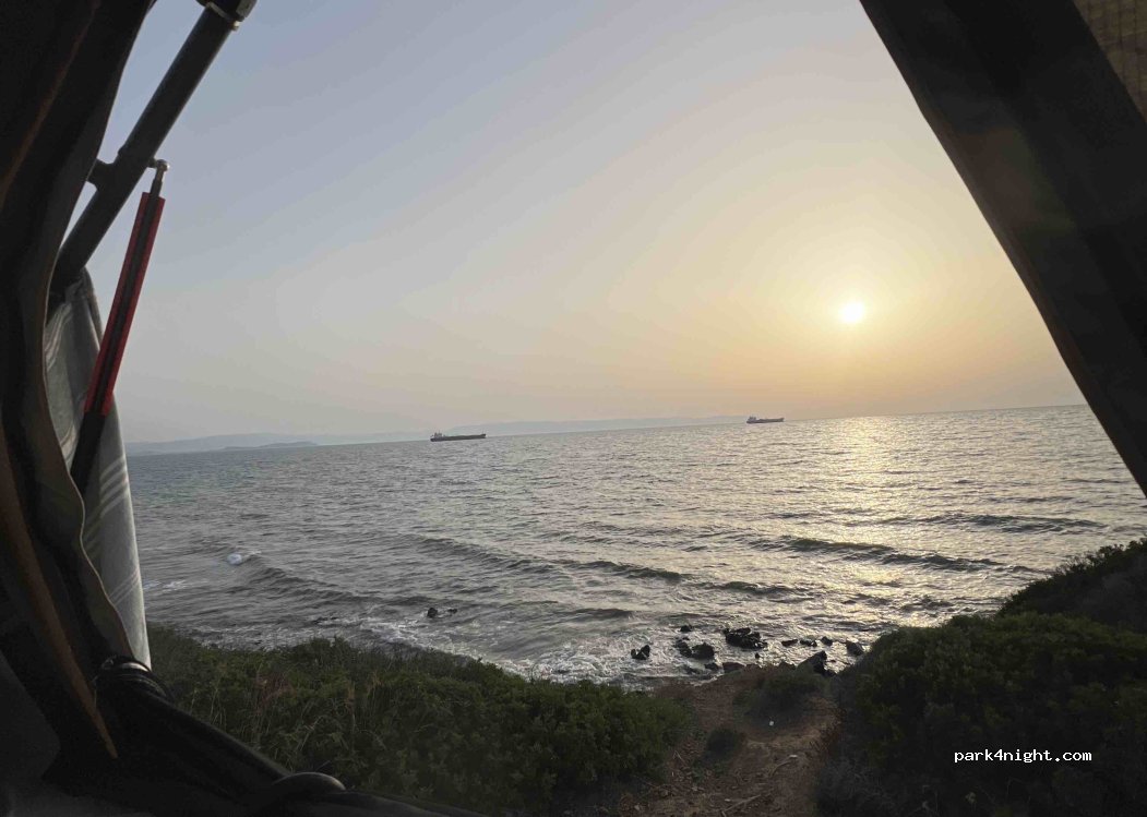 Wir standen am Ende der asphaltierten Straße an der Ruine mit unserem Wohnmobil. Der Platz ist gerade und es passen einige Fahrzeuge hin. Platz extrem vermüllt! Zum Baden nicht geeignet und die Aussicht auf den Industriehafen ist auch nicht besonders schön. Es gab kaum Verkehr und es war nachts ziemlich ruhig.