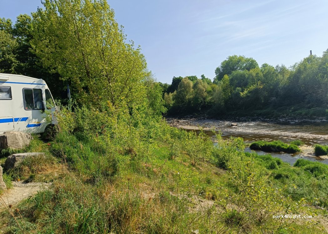 Aire correcte proche du centre ville. Le bruit de la circulation de jour est plus gênant que la rivière. Mais de nuit aire calme.