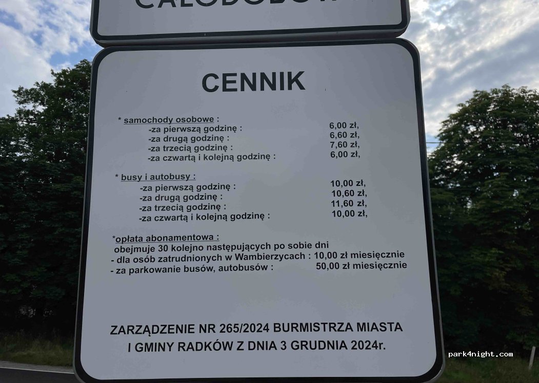 Grand parking au début de Wambierzyce. Nouvelles toilettes disponibles, nuit possible. Près du temple.