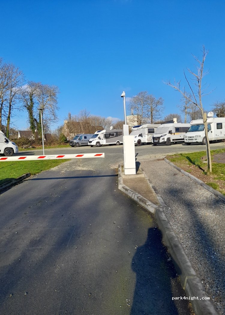 Empfangsbereich für Wohnmobile oben auf dem Parkplatz des Kulturzentrums Le Nautile in La Forêt-Fouesnant. (Bereich seit Juli 2022 geöffnet.)