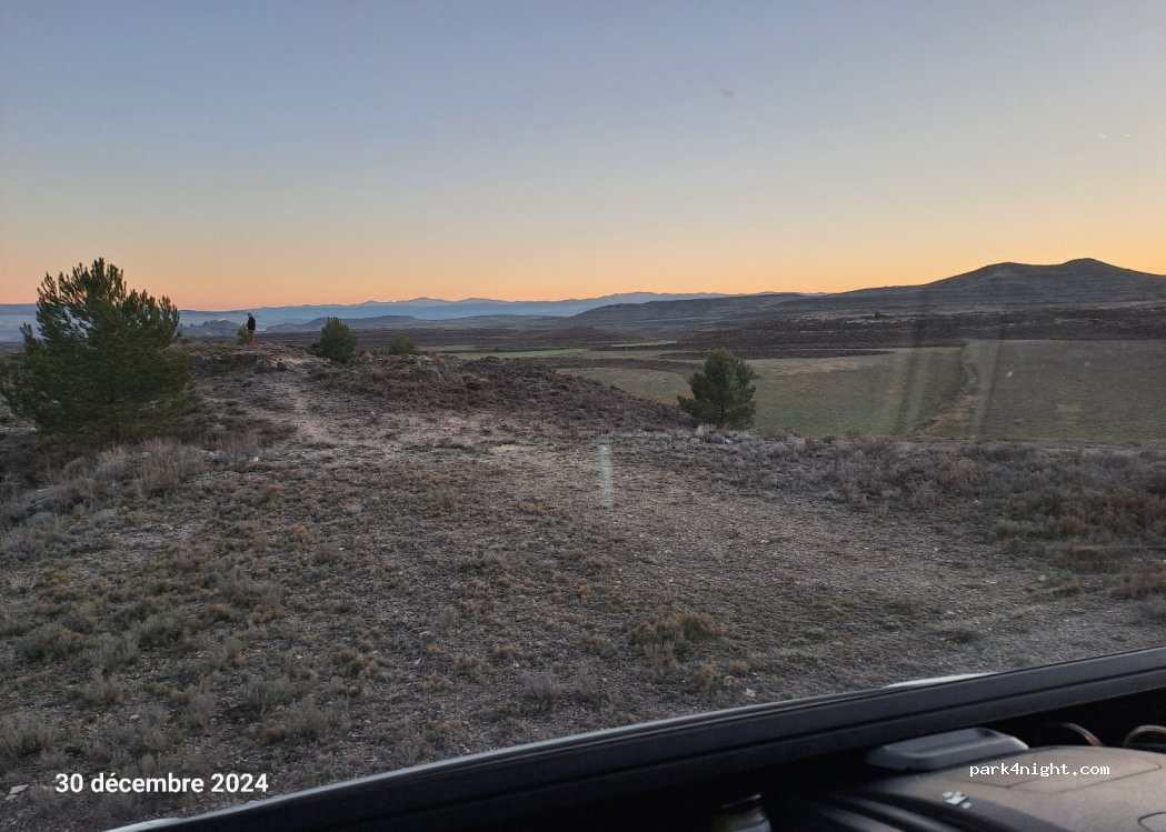 Site large et plat, sans arbre, donnant sur le château de Calatayud. Parfait pour sortir de la camionnette et aller sur la route.