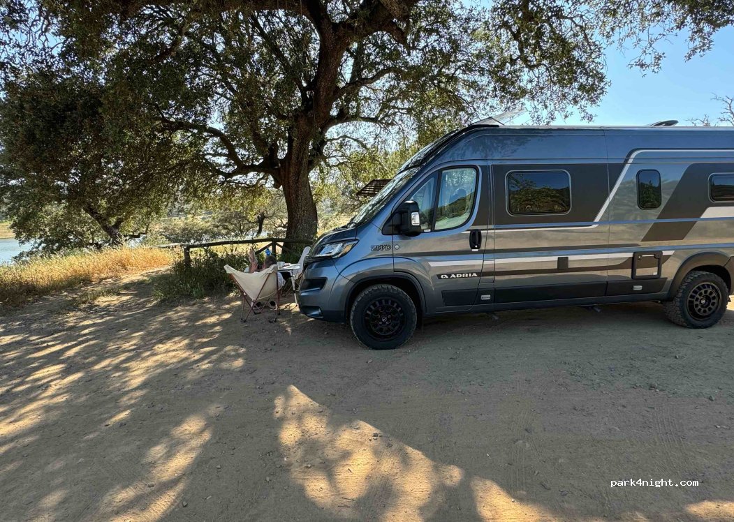 Parfait pour vans. Raisonnablement 3 ou 4 places à peu près planes. Il y a moyen de trouver des emplacements autour du lac si l'aire est pleine. dans ce cas , mieux vaut arriver de jour. Eau (non potable)facilement puisable au lac