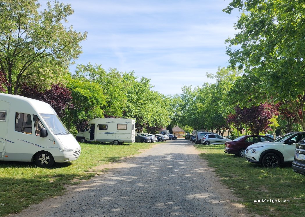 Une seule travée ouverte pour les camping-cars. Nuit au calme a l'opposé de l'entrée. Une dizaine de camping-cars. Emplacements en pente mais rectifiable facilement avec les cales. Pas de service