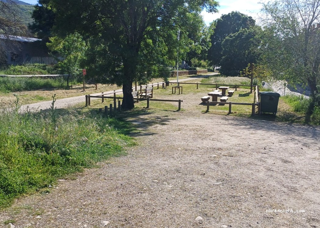 Sitio para máximo 5 autocaravanas aproximadamente. Hay una carretera al lado y hay ruido. Al lado de la vía verde.