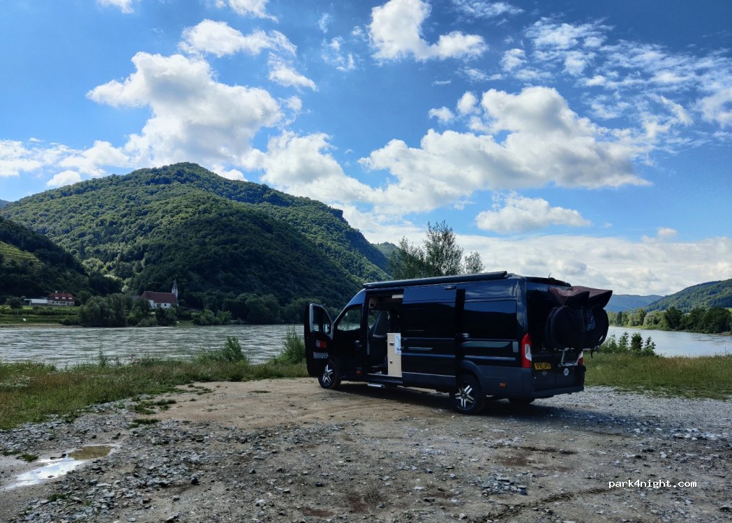 Stunning views of the Danube at this place. Close to the road and there is a bus stop right in front. No facilities apart from some bins and a bench. Stayed one night on the 28/10/2022.