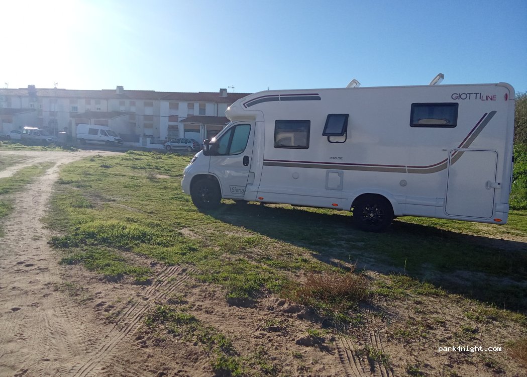 Descampado al final de C/ Gramosilla. Si te quedas donde dice aplicación estás al lado de carretera y el tráfico puede molestar. Zona residencial tranquila. Por la mañana los vecinos sacan ahí a los perros. A nosotros nadie nos molestó. Hay varios restaurantes a 5 minutos en rotonda. Si al menos tuviera zona de vaciado y llenado de aguas , sería 5 estrellas. Recomendable.