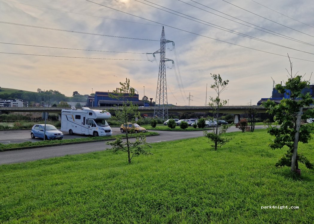 This is terrible. Steeply sloping site and a strong smell of burning coal. Small car-sized spaces. You would have to be desperate to even consider it. I’m happy to sleep in most car parks on P4N but not this one. I went on to Lierganes train station which gets full but is much better. Quiet trains!
