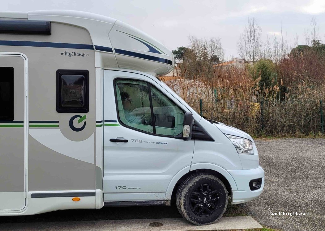 Super air bien sympathique à 300 m de la plage et des commerces emplacements bien délimités, il faut la carte pas etape camping car park, si vous ne l avez pas elle vous seras vendu pour 5 euros mais vous l aurez à vie pour tous les camping car Park, attention entrée un peu difficile mais moi avec un 8 m ça passe !!