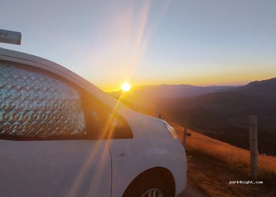 Grote parkeerplaats bovenin het skigebied. Weg er naar toe is prima asfalt, laatste gedeelte een stukje 14% en goed te doen. Je staat hier op 2000 meter hoogte. Vandaag staan we hier in de zon boven de bewolking. Heerlijk rustige plek met volop wandelmogelijkheden. Geen enkele voorziening. Op 300 meter een bron waar je evt water kan tappen.