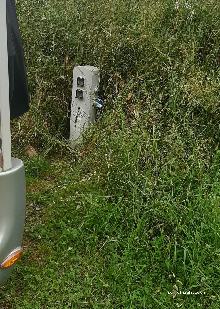 Area sosta compresa di corrente e servizi. Prezzo ottimo. Il mio posto era un bel po' in dislivello che non sono riuscito a compensare totalmente con i cunei.