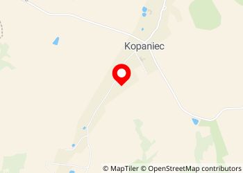 À Kopaniec, au carrefour, montez la côte. Après environ 200 m, tournez légèrement à droite au bout de la clôture métallique vert-jaune, entrez dans l'allée à gauche, traversez le pont, puis tournez immédiatement à droite jusqu'au numéro 96.